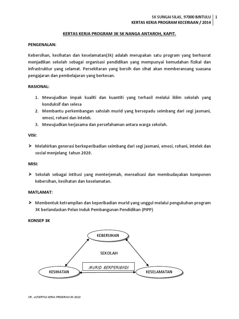Doc Kertas Kerja Program 3k Sk Nanga Antaroh Kapit Nina Bobo Academia Edu