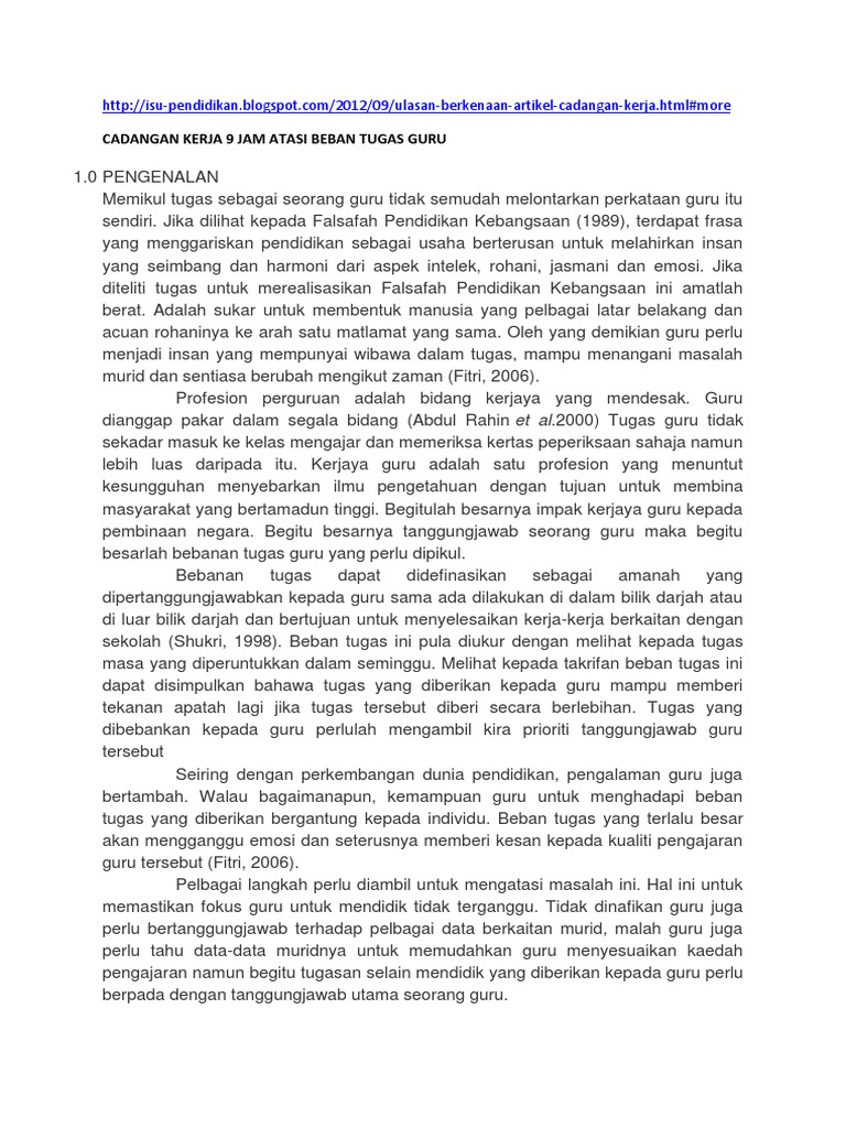 Cadangan Kerja 9 Jam Atasi Beban Tugas Guru Pdf
